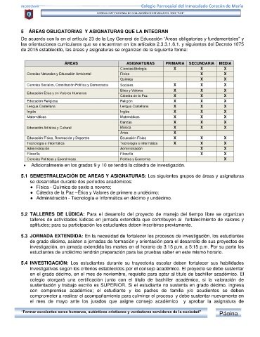 5.1 SEMESTRALIZACIÓN DE AREAS Y ASIGNATURAS: Los siguientes grupos de áreas y asignaturas